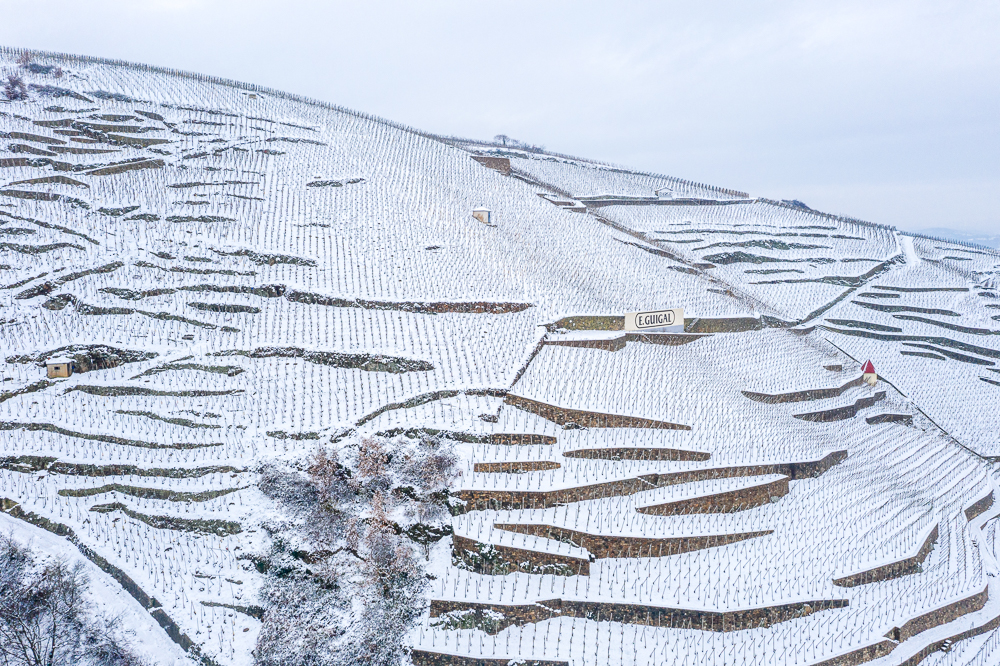 One of the three “LaLa” wines that Guigal produces and are the most collectible wines of the Rhone Valley, La Landonne is a remarkable expression of terroir. And for good reason, La Landonne is situated on one of the steepest vineyards of the Côte Brune, a 45 degree slope that remarkably requires harvesters to start picking from the bottom of the vineyard and work their way up, placing grape bunches in bins that are set on sleds and dragged up the hill. Along with its position at the northern end of the Côte Brune and the fact it is the last vineyard to ripen, La Landonne is the mirror of the feminine and voluptuous La Mouline: it is a wine of driving power, defined by its dark fruit and structure. The first vintage Guigal produced was in 1978, after being planted in 1975 at the time of Philippe Guigal’s birth.
