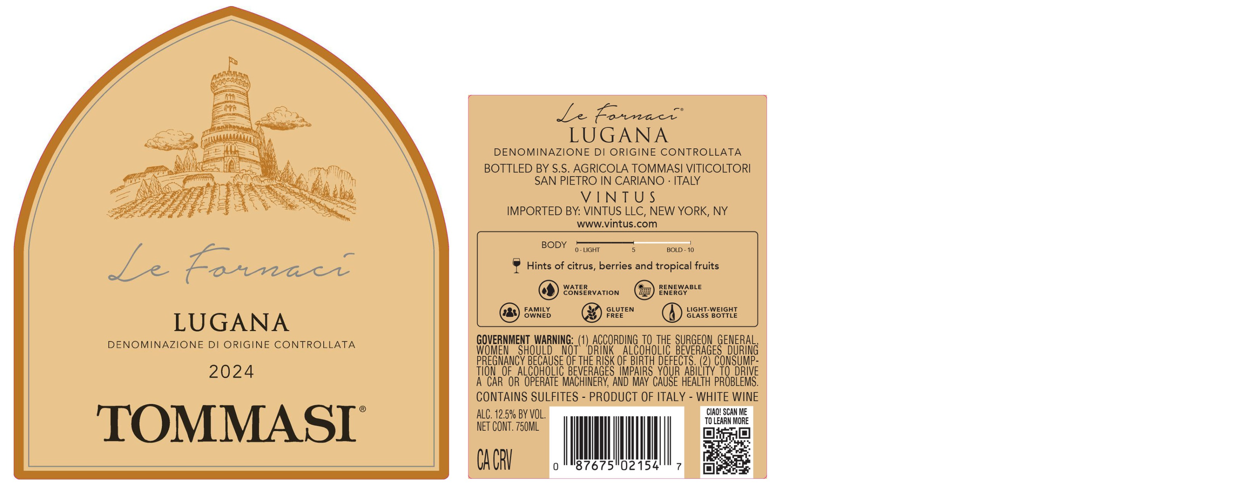 Vinous - September 1, 2025 "The 2024 Lugana Le Fornaci bursts from the glass with a pungent array of tropical citrus and florals complementing green melon. It entices with its fruit-forward personality, nicely offset by a tinge of sour lemon and salty minerals. The 2024 leaves the palate completely reset and aching for another sip as nuances of mint slowly fade."