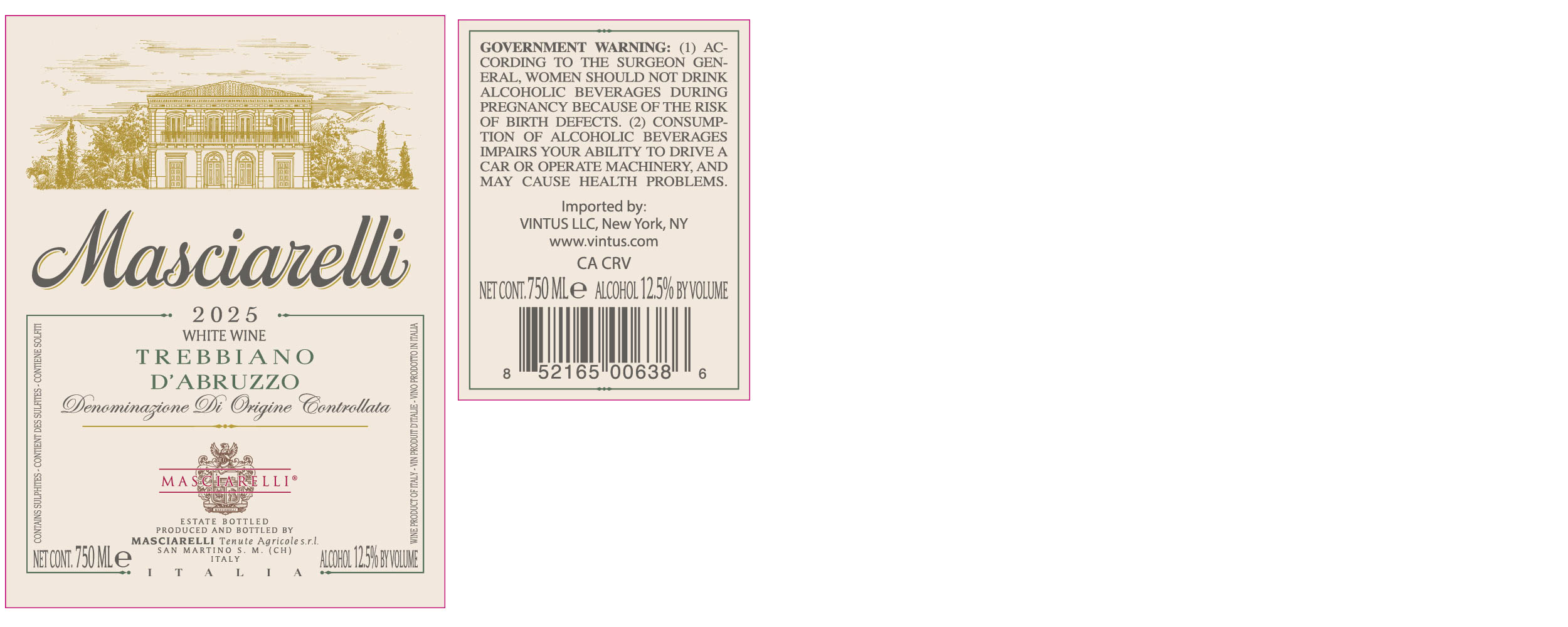 In a span of only 30 miles between the Apennine Mountains and the Adriatic Sea, Masciarelli has carefully assembled 60 specific sites averaging just 5 acres and spread across the diverse soils and altitudes of the 4 provinces of Abruzzo. These vineyards are farmed sustainably, and the five specific vineyards that bear fruit for this wine range in altitude from 435 to 1,200 feet with soils of calcareous clay and lime.