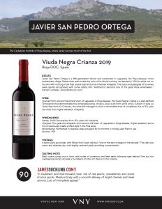 Sourced from around the famed town of Laguardia in Rioja Alavesa, the Viuda Negra Crianza is a well-defined Tempranillo that demonstrates the remarkable sense of place Javier pulls from all his wines. Jubilant in style, as Javier likes from his Crianza’s, the wine still manages to show a remarkable level of complexity due to 30+ year old vines from higher elevation vineyards.